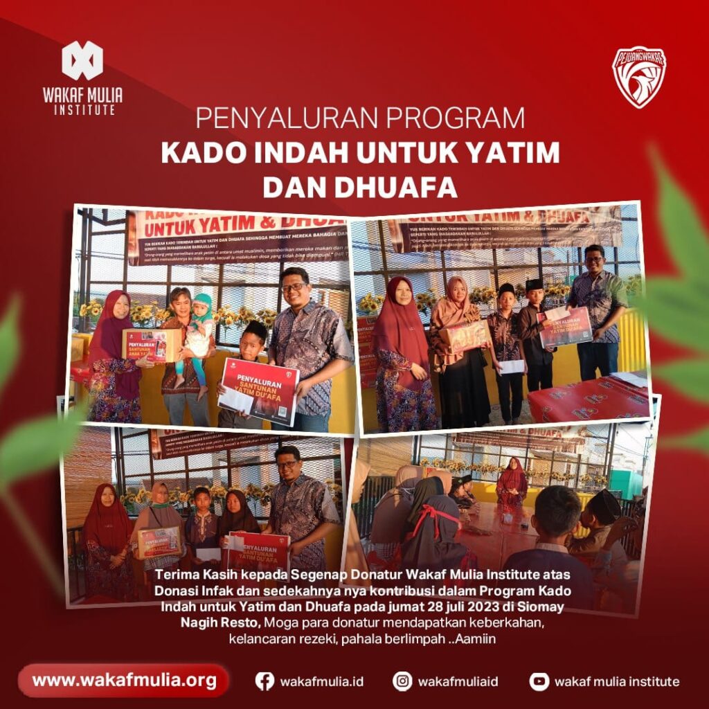 Terima Kasih kepada Segenap *Donatur Wakaf Mulia Institute* atas Donasi Infak dan sedekahnya nya kontribusi dalam Program Kado Indah untuk Yatim dan Dhuafa pada jumat 28 juli 2023 di Siomay Nagih Resto, Moga para donatur mendapatkan keberkahan, kelancaran rezeki, pahala berlimpah..Aamiin
